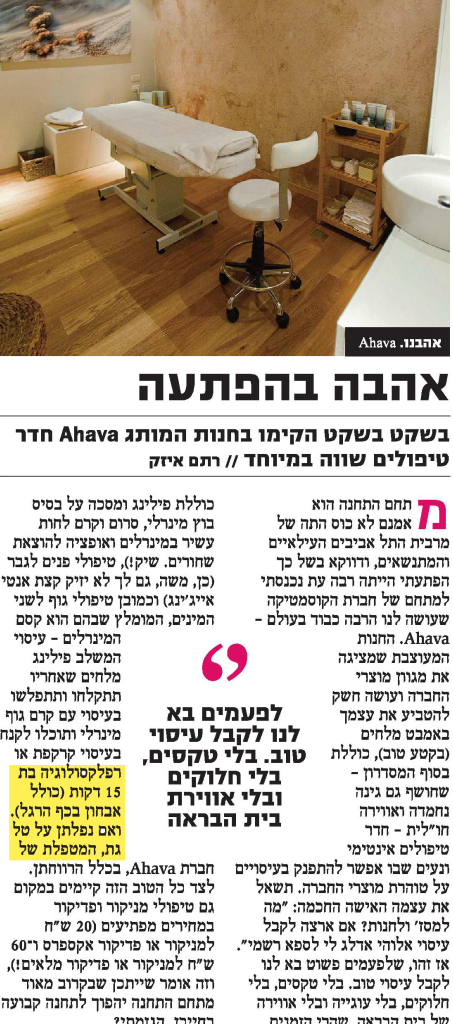 פורסם בנובמבר 2014, בהיותי המטפלת הראשית של חברת AHAVA